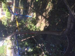 写真は、病院の近所のバンビ公園の鉄棒に落下した木の枝です。かなり太い枝なので、総重量は20kgくらいはあると思います。